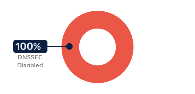 分析対象となったアルゼンチンのドメインのうち、DNSハイジャックやキャッシュポイズニングから保護されているのはわずか1.8%に過ぎない。DNSSECが導入されていない場合、攻撃者はユーザーを不正なウェブサイトにリダイレクトしたり、DNS層で電子メールの通信全体を傍受したり、任意のドメインになりすましたりすることが可能となり、導入されている他のあらゆる認証層の信頼性が完全に損なわれてしまう。政府および教育機関のセクターでは、国内で最も機密性の高い機関データを保有しているにもかかわらず、DNSSECの導入率は0%となっている。