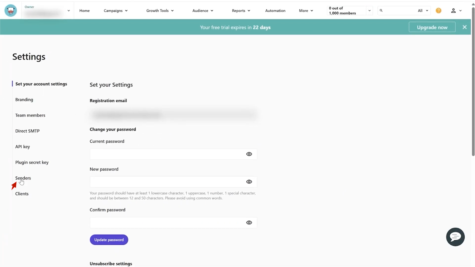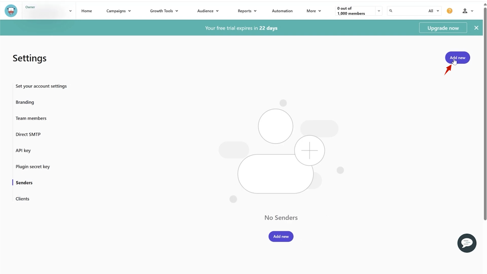 - From the left sidebar, click on ‘Senders.’