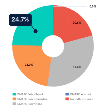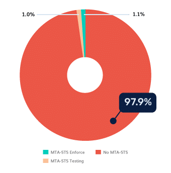 Ondanks deze verbeteringen en een sterke SPF-implementatie, zorgen grote gaten in DMARC-handhaving, een zeer lage MTA-STS-acceptatie en onvoldoende DNSSEC-implementatie voor een omgeving die phishing, domain spoofing en het onderscheppen van e-mail toelaat.