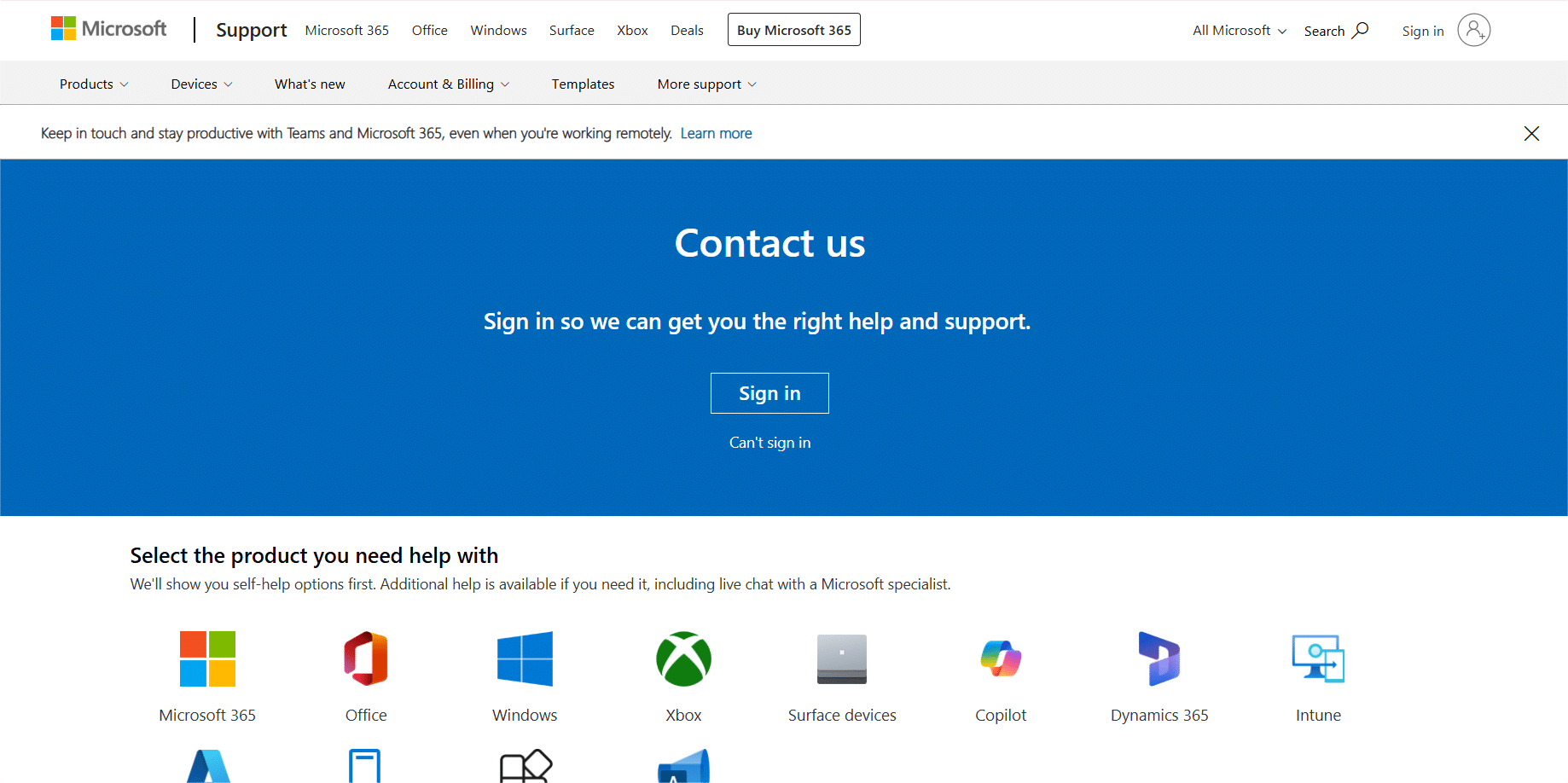 Als u alle stappen voor probleemoplossing hebt doorlopen en de fout blijft zich voordoen, neem dan rechtstreeks contact op met Microsoft Support. Zorg ervoor dat u het volgende bij de hand hebt wanneer u contact opneemt: