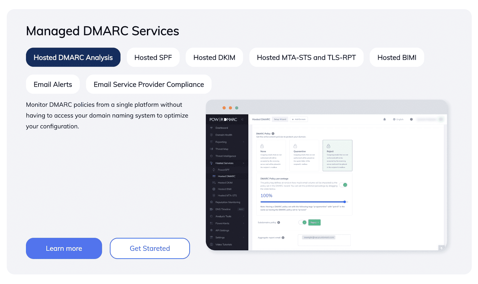 PowerDMARC helpt bedrijven om dit goed in te stellen, met tools om e-mailverificatie binnen hun hele domein te implementeren, te controleren en te beheren. Dit betekent dat Microsoft-foutcodes met betrekking tot verificatie een probleem worden dat u slechts één keer hoeft op te lossen.